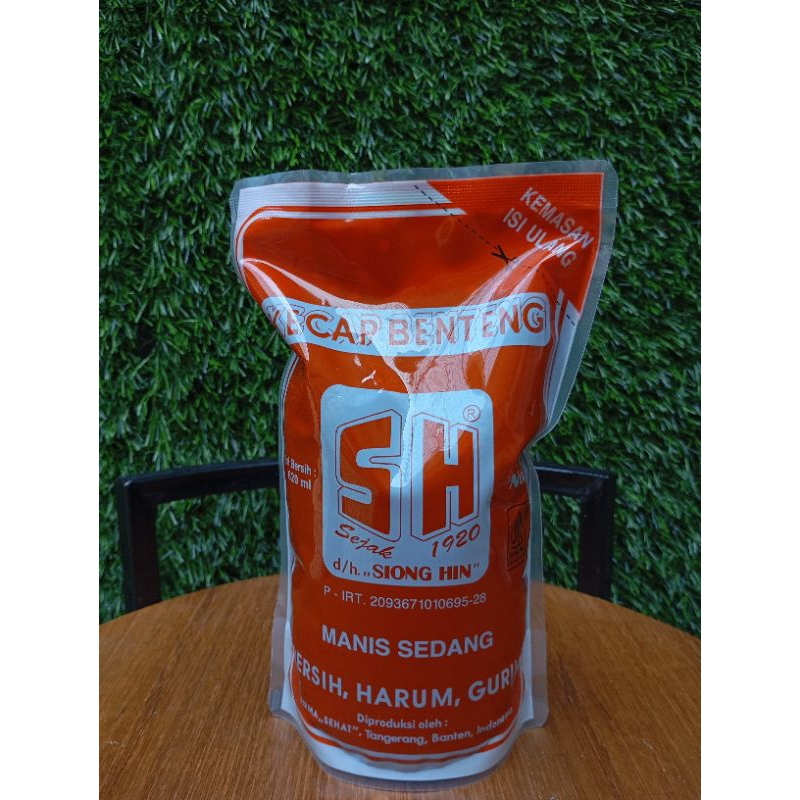 Kecap Benteng SH dibuat secara tradisional dengan bahan-bahan alami, termasuk gula kelapa, sari kacang kedelai hitam, garam, air, dan bumbu seperti pekak, kayu manis, dan ketumbar. Kemasan berbentuk pouch (kantung refill) dengan netto 620 ml.