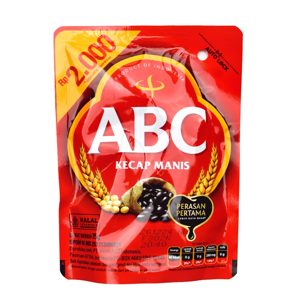 Segera nikmati lezatnya kecap manis yang tak ada duanya melalui kecap manis abc 75ml, kecap manis yang hadir dengan sari kedelai terbanyak, yang kelezatan rasanya siap membentuk senyuman lebar pada moment - moment berharga bersama keluarga tercinta, bakal bikin masakan anda jadi makin kaya dan gak bersisa. kecap manis abc dibuat dari sari kedelai terbanyak pilihan dan berkualitas yang diproduksi dengan standar mutu yang ketat, yang siap memberikan ekstra rasa dan aroma maksimal pada beragam masakan anda, dalam rangka menghadirkan kepada keluarga Indonesia masakan yang lebih kaya rasa, siapapun yang masak.