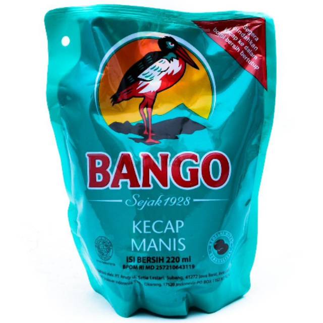 Kecap Manis brand bango kemasan pouch refill ukuran 220 ml.