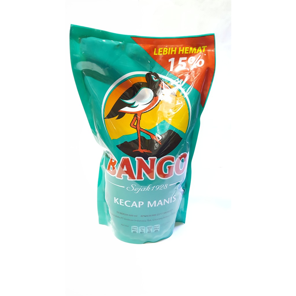 Kecap manis BangoTerbuat dari bahan alami pilihan seperti kedelai hitam pilihan difermentasi terlebih dulu beberapa bulan untuk kemudian melalui proses pengolahan khusus agar dapat berpadu sempurna dengan bahan-bahan lain untuk menghasilkan citarasa unik yang membuat Kecap Bango berbeda dari kecap-kecap lainnya kecap ini hadir dalam kemasan pouch praktis yang memudahkana Anda untuk menyajikan hidangan istimewa dengan rasa yang nikmatBerat Netto : 575ml