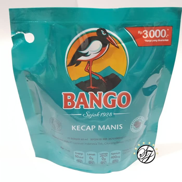 Kecap manis BangoTerbuat dari bahan alami pilihan seperti kedelai hitam pilihan difermentasi terlebih dulu beberapa bulan untuk kemudian melalui proses pengolahan khusus agar dapat berpadu sempurna dengan bahan-bahan lain untuk menghasilkan citarasa unik yang membuat Kecap Bango berbeda dari kecap-kecap lainnyakecap ini hadir dalam kemasan pouch praktis yang memudahkana Anda untuk menyajikan hidangan istimewa dengan rasa yang nikmatBerat Netto : 60 ml