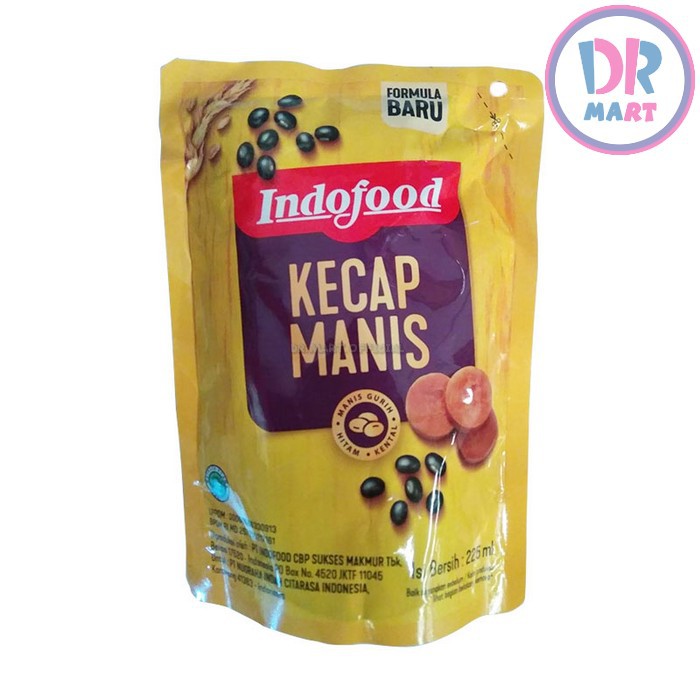 Kecap Manis Indofood 225 ml (Kemasan Baru) ( formula baru lebih kental, hitam , gurih )