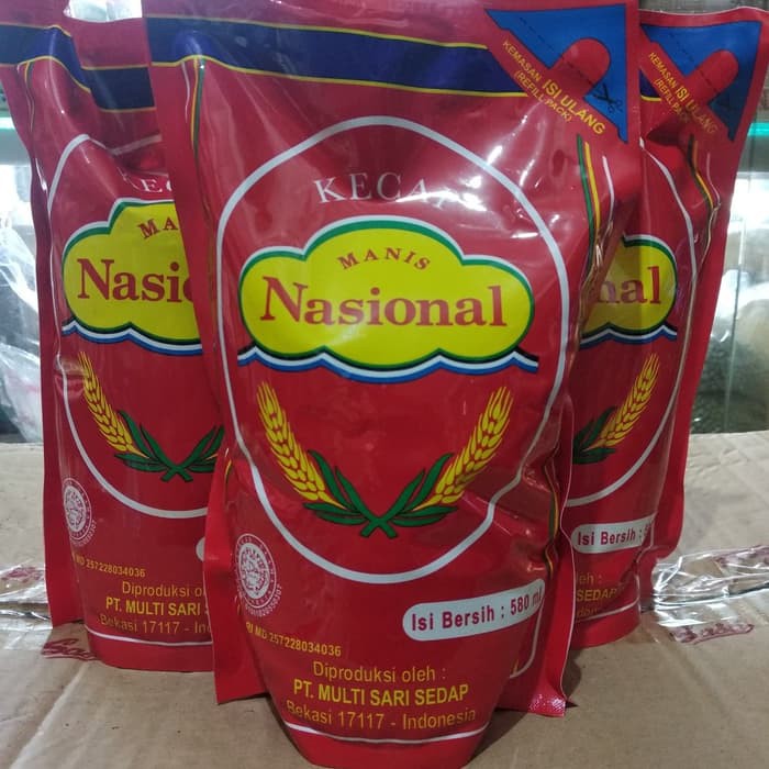 Kecap Nasional Refill 580ml kemasan isi ulang botol, jadi tidak perlu repot untuk membeli botol lagi karena sudah ada kemasan refill