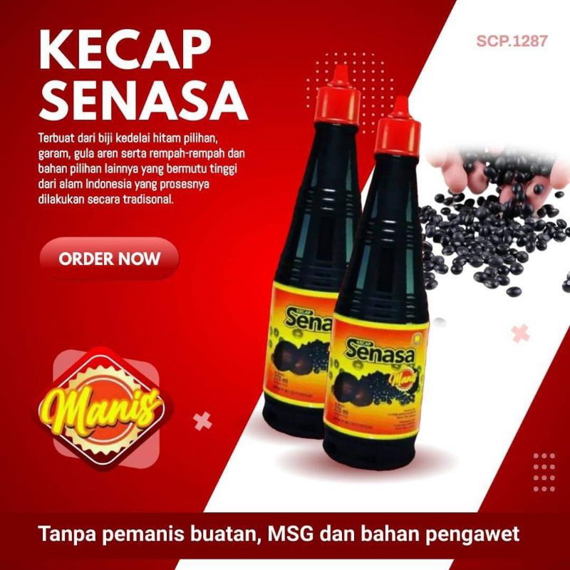 Kecap SENASA terbuat dari bahan alami yang bebas dari bahan pengental, bahan pengawet, bebas MSG, pemanis buatan dan bahan pewarna sehingga sangat pas digunakan sebagai penyedap makanan keluarga sehari-hari. Kecap sedap ini juga memiliki cita rasa yang tinggi dan aroma yang khas.