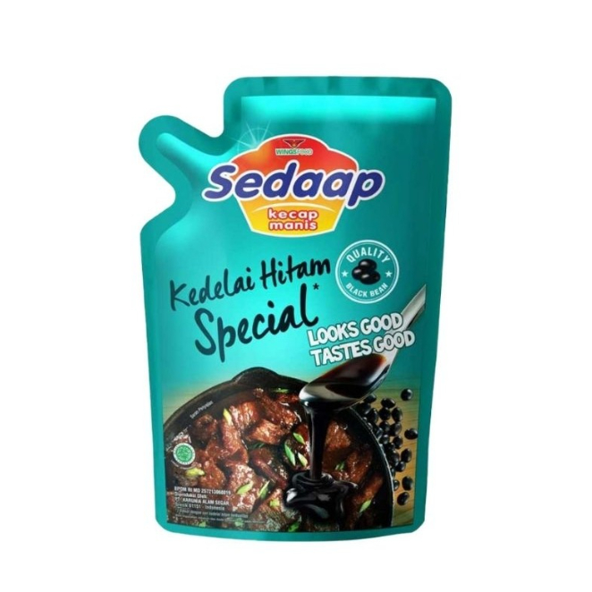 Produk unggulan dari Kecap SEDAAP yang dibuat dari perasan pertama kedelai hitam pilihan. Diolah dengan menggunakan mesin yang canggih dan higienis sehingga menghasilkan kecap manis yang hitam, kental dan kaya rasa. Mengandung Gula, Sari kacang kedelai 12% (Mengandung gandum 0.6%), air, garam pewarna alami karamel III dan IV, pengawet natrium benzoat, penstabil nabati, pengatur keasaman.