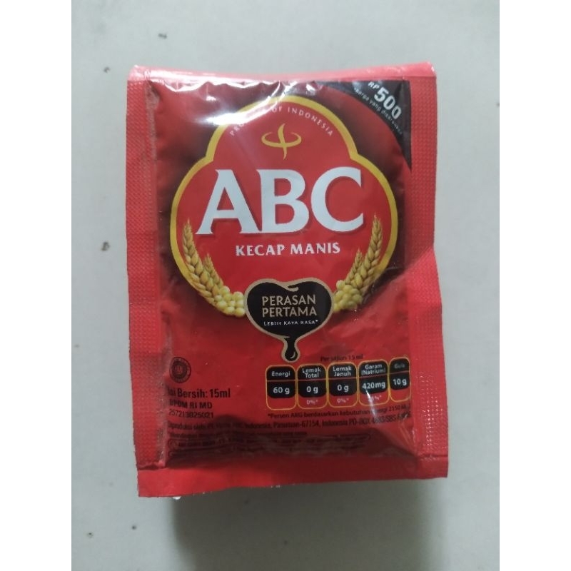 kemasan sachet kecap manis ABC 15ml. harga utk 1pcs. Silahkan diorder..