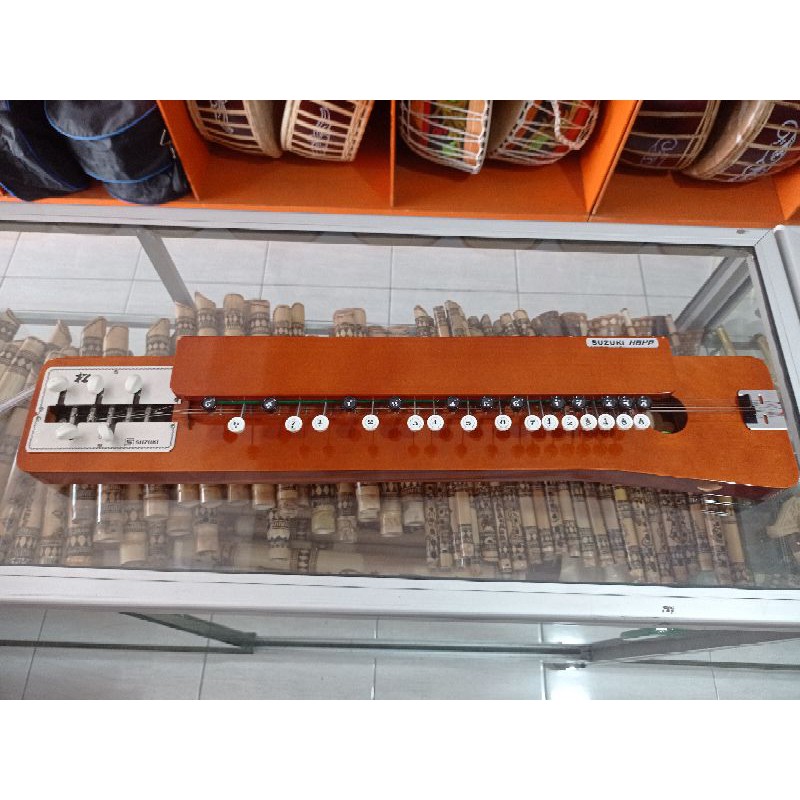 Alat musik mirip kecapi dengan 5 senar. Memainkannya dengan dipetik oleh jari tangan kanan dan jari kiri menekan tuts2 yang terhubung dengan senar.