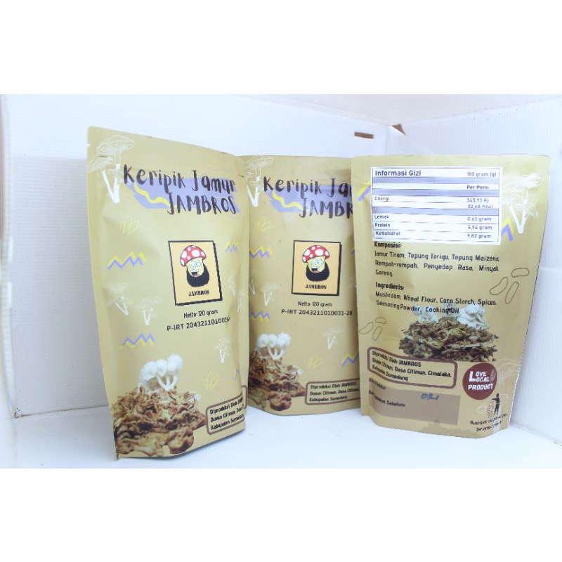 Keripik Jamur Jambros merupakan olahan atau makan ringan yang berbahan dasar jamur tiram putih dan dibudidaya sendiri sehingga terjamin kesegarannya dan jamur tiram terbaik.