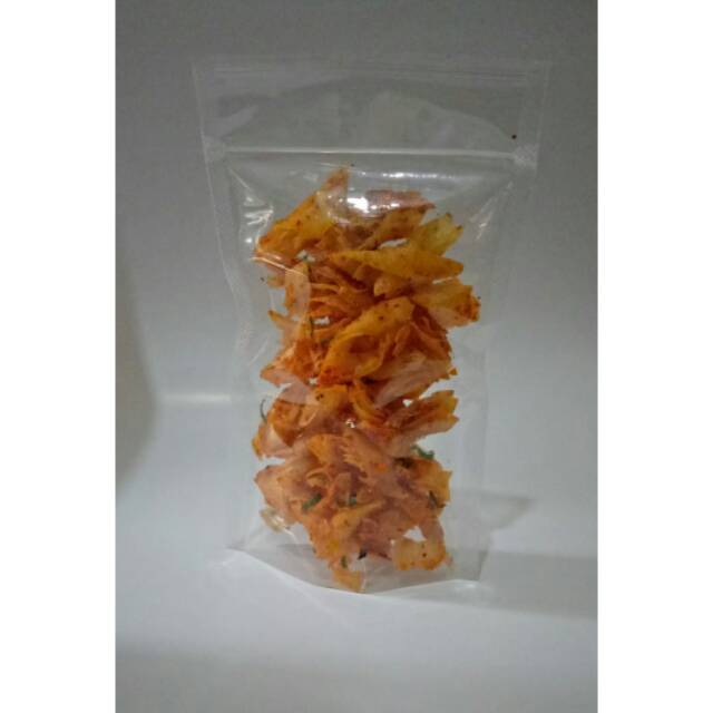 Keripik lumpia lada yang ditaburi irisan daun jeruk