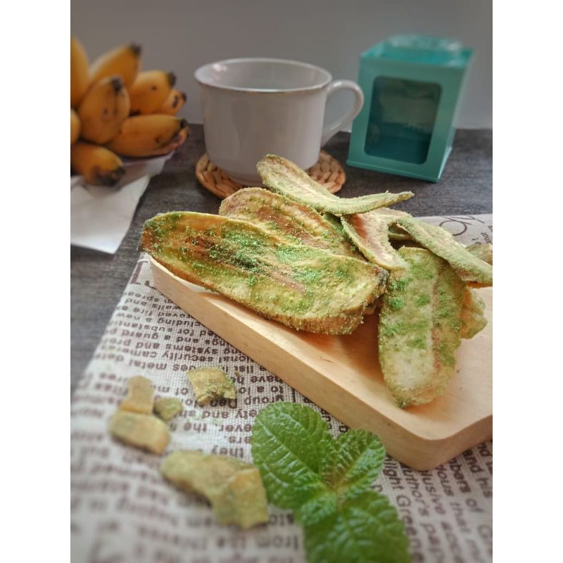 Merupakan keripik pisang dengan taburan bubuk rasa2 tanpa menggunakan bahan pemanis buatan.