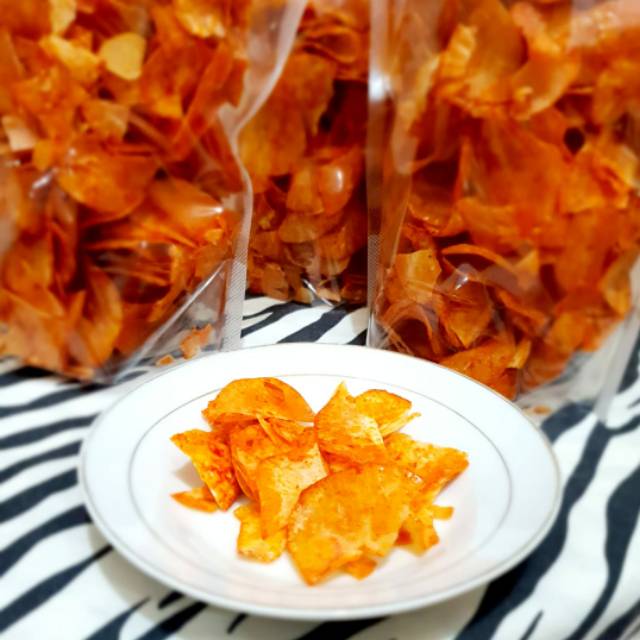 Keripik singkong rasa pedas.