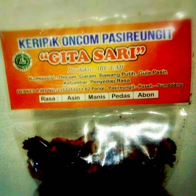 Keripik oncom gitasari adalah salah satu variasi makanan ringan berbahan dasar oncom pasireungit dgn kualitas oncom terbaik disumedang.