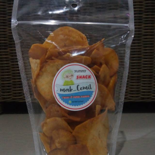 Keripik singkong dengan rasa pedas asli dari cabe pilihan. Keripik dengan irisan agak tebal tp sangat renyah, tidak mengandung banyak minyak sehingga kering dan nikmat untuk menemani di segala aktivitas kita.