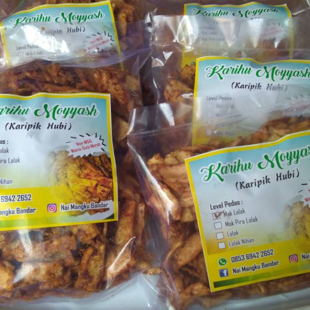 Keripik ubi pedas manis tersedia dalam 4 level pedas
