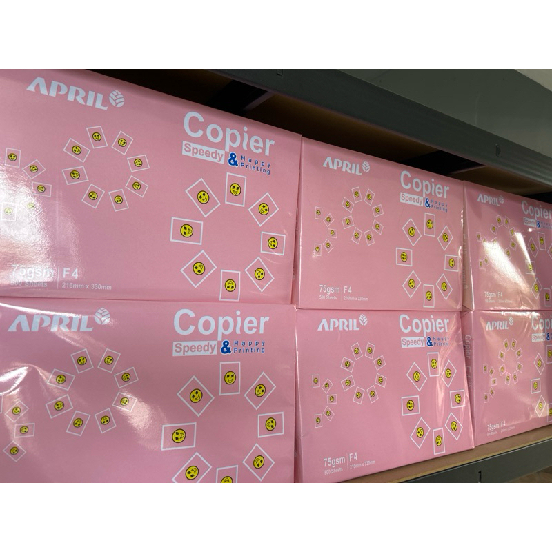 Kertas APRIL copier speedy & happy printing berwarna putrih dan berukuran 216 x 330 mm, 1rim (500 lembar)