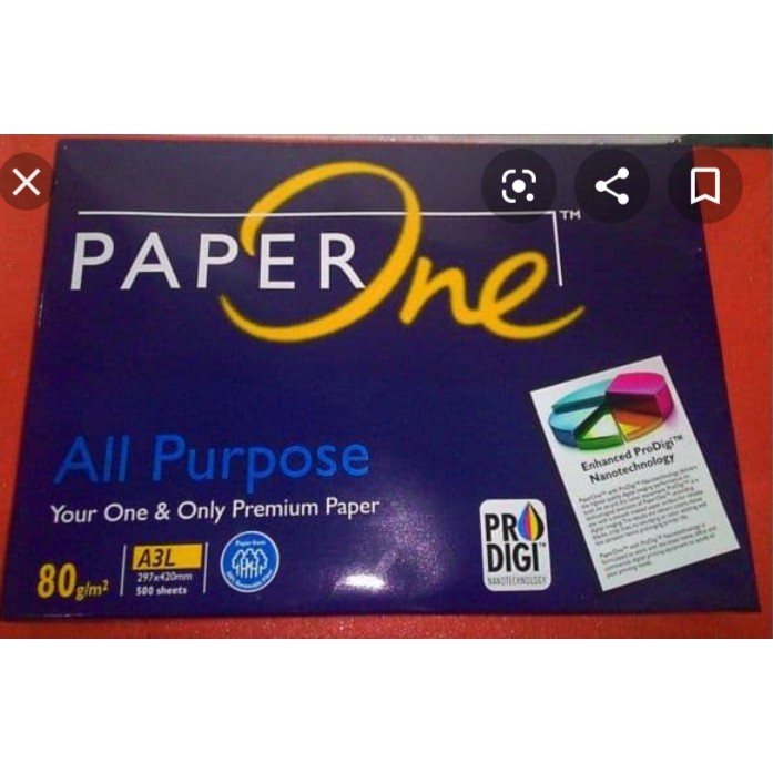 Kertas Foto Copy A3 80gr Paper One ( 1 Rim 500lbr )