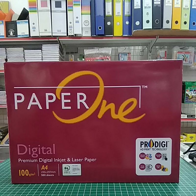 Kertas HVS A4 100gr Paper One. Harga untuk 1 rim (isi 500 lembar).