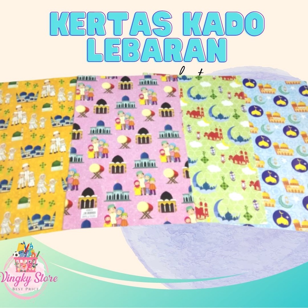 Kertas kado edisi hari raya lebaran kali ini cocok digunakan untuk bungkus hadiah atau bingkisan kepada sanak saudara kita. Dengan motif islami yang menambah kesan suka cita merayakan hari Raya.