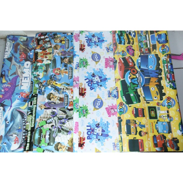 Kertas kado dengan berbagai macam karakter Robot, Boneka dan baby