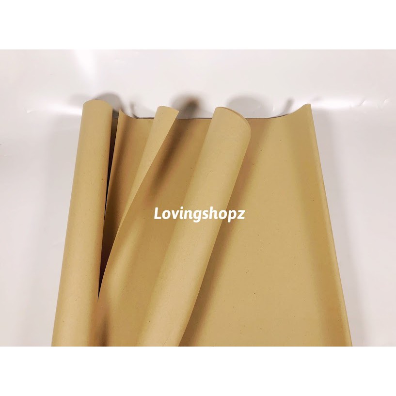 memiliki ciri kertas yang berwarna coklat kardus penampakannya seperti kardus daur ulang, ketebalannya tidak terlalu tebal juga tidak tipis.