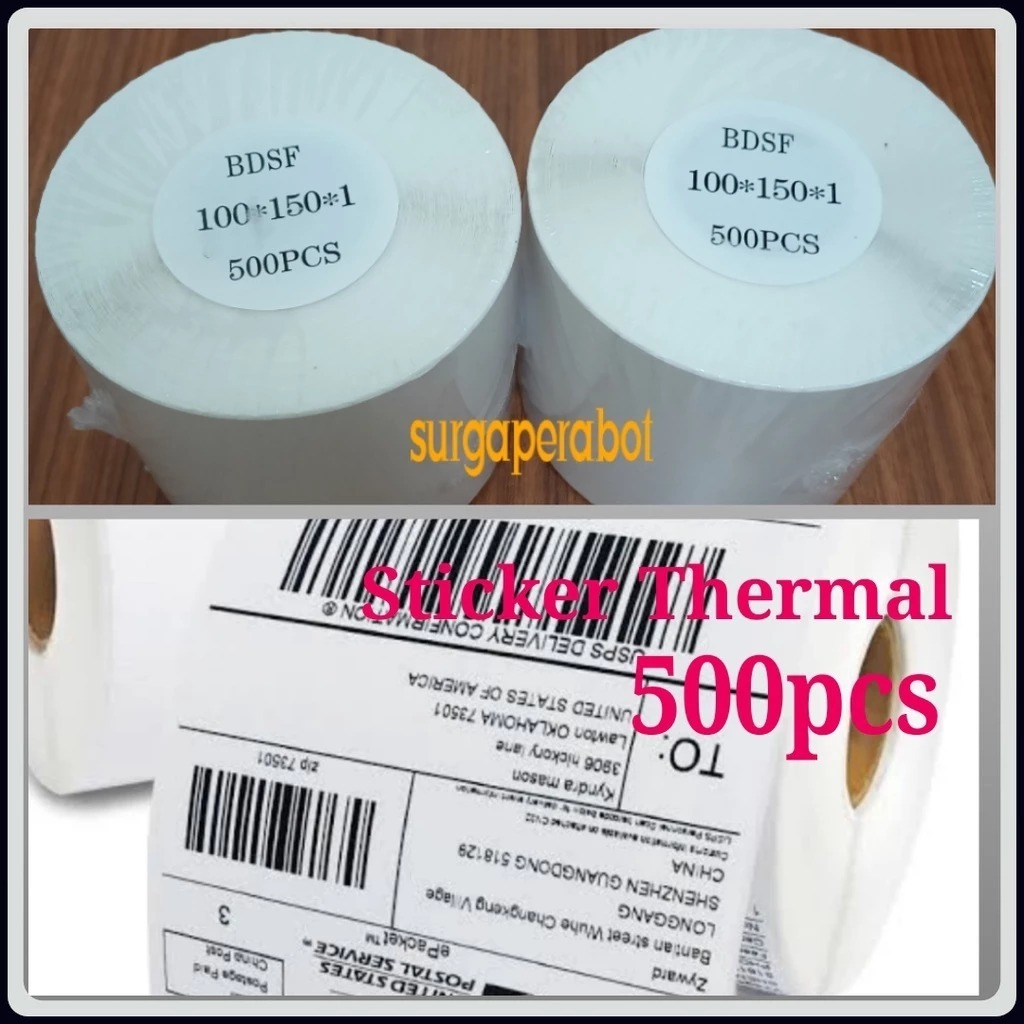 Kertas Sticker Thermal BESAR Label Barcode Roll Rol 500 pcs