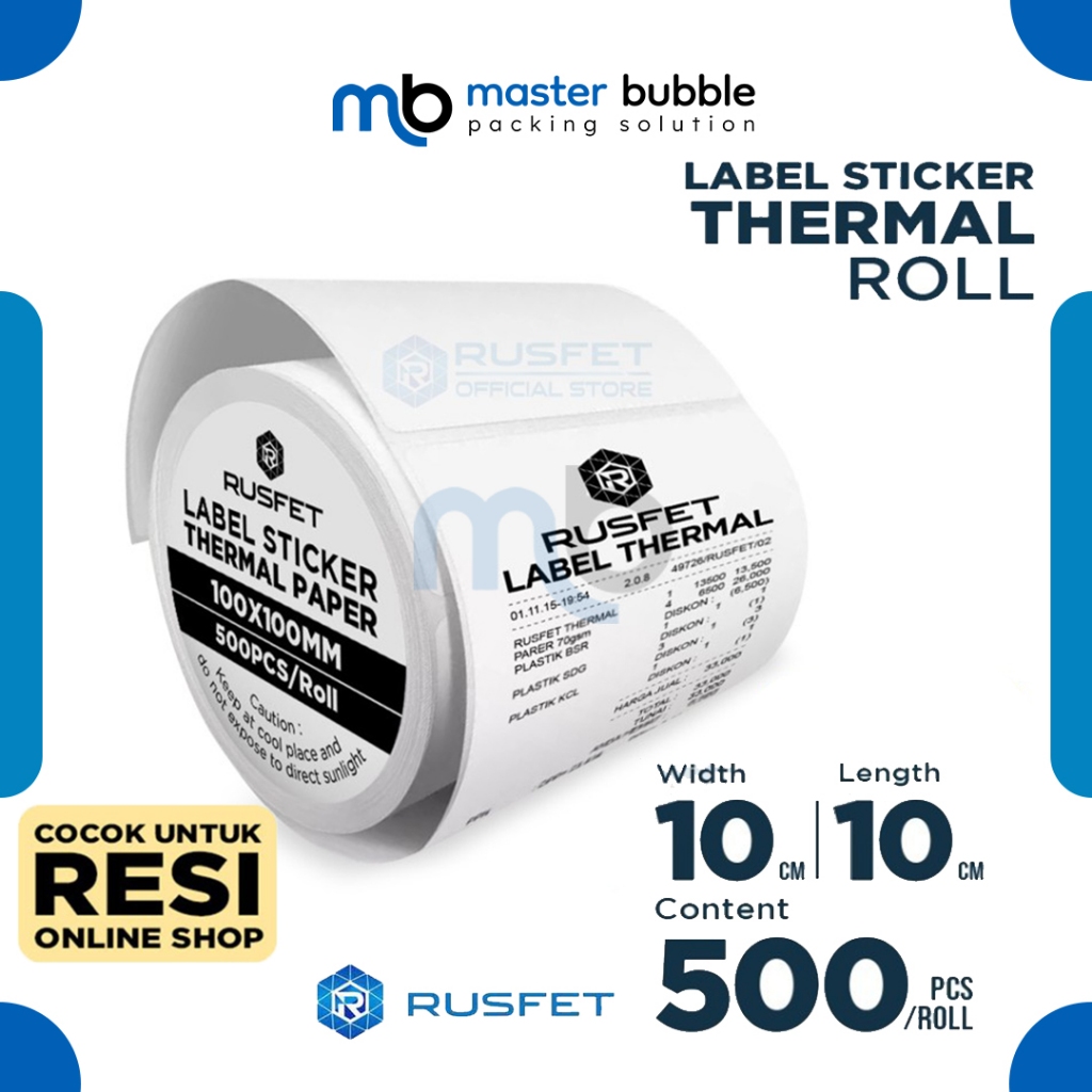 Kertas Termal Label RUSFET Sticker Paper Thermal Printer Resi 10cm x10cm - 500pcs Per Roll