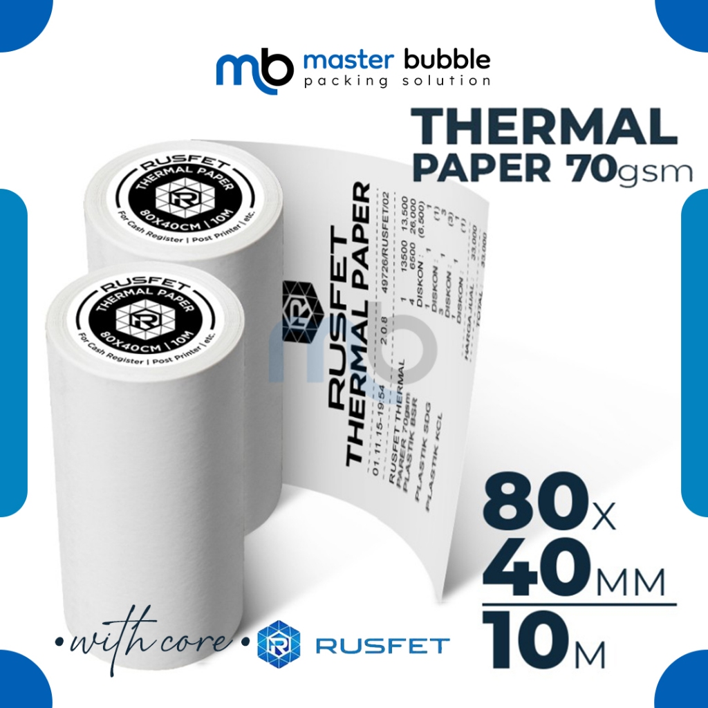 Kertas Termal Label RUSFET With Core Sticker Paper Thermal Printer Resi 80mm x 40mm - 10,5m Per Roll