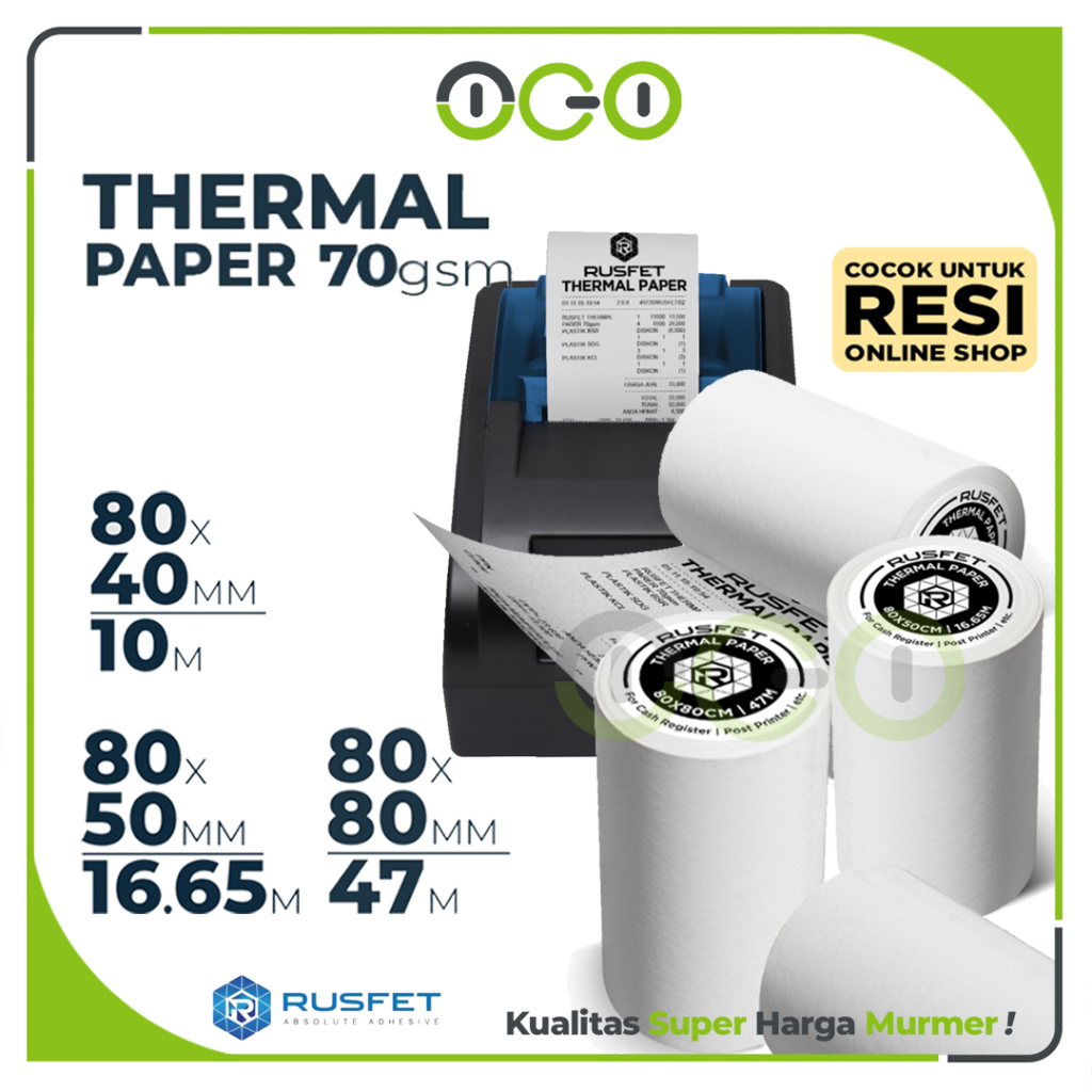 Kertas Thermal 80mm x 47 / 16 / 10meter Core termal Paper Sticker Label Printer Resi Per Roll RUSFET