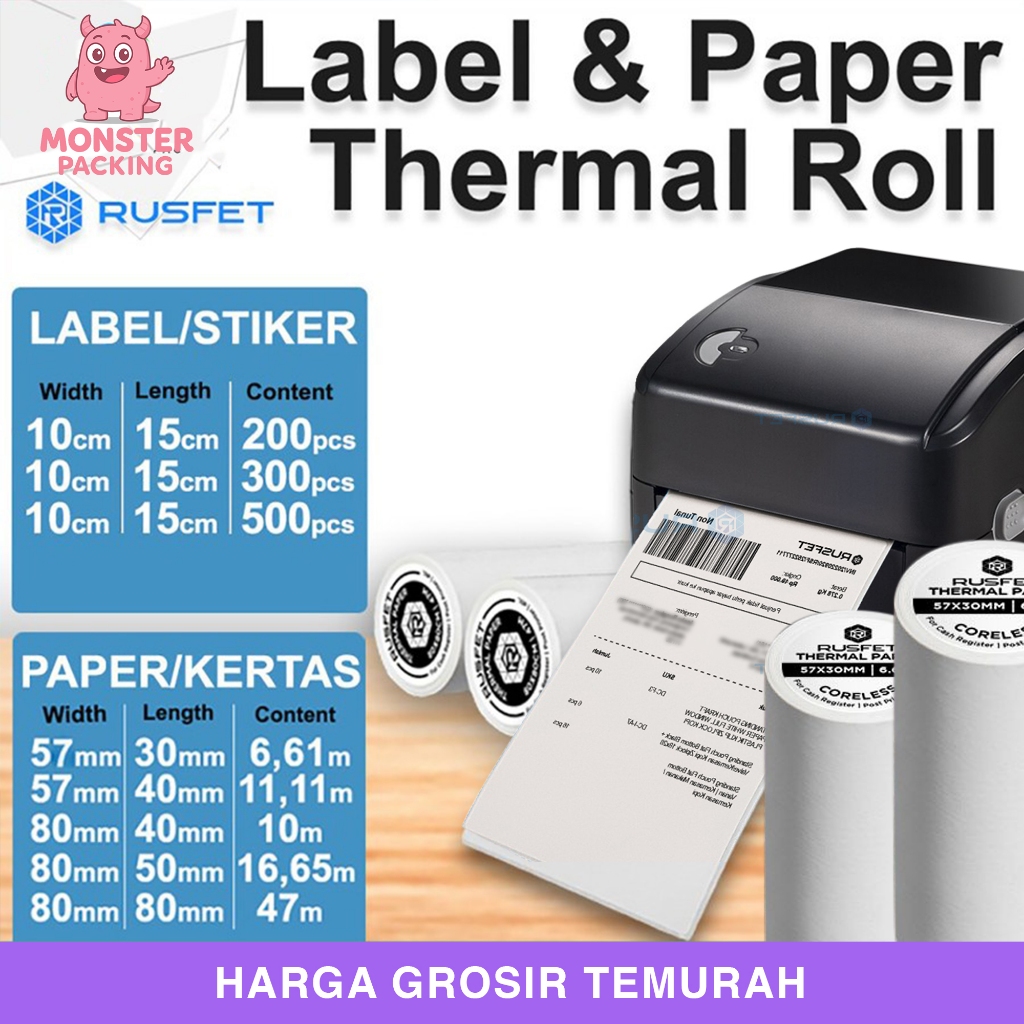 Kertas Thermal Label Thermal Struk Kasir Printer Barcode RUSFET