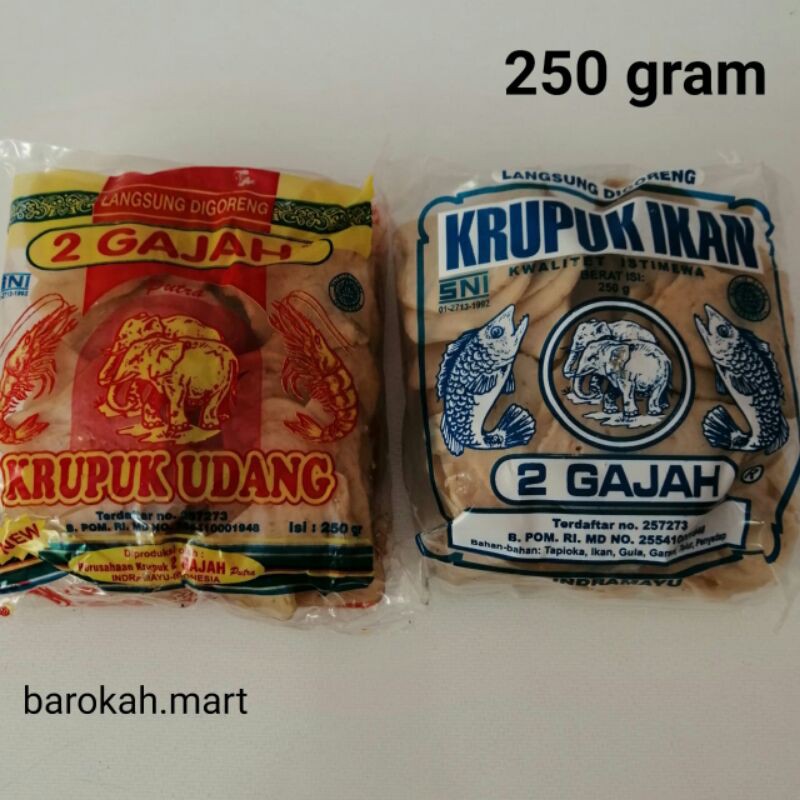Kerupuk udang dan ikan asli Indramayu kemasan 250 gram cap dua gajah, murah, ekonomis