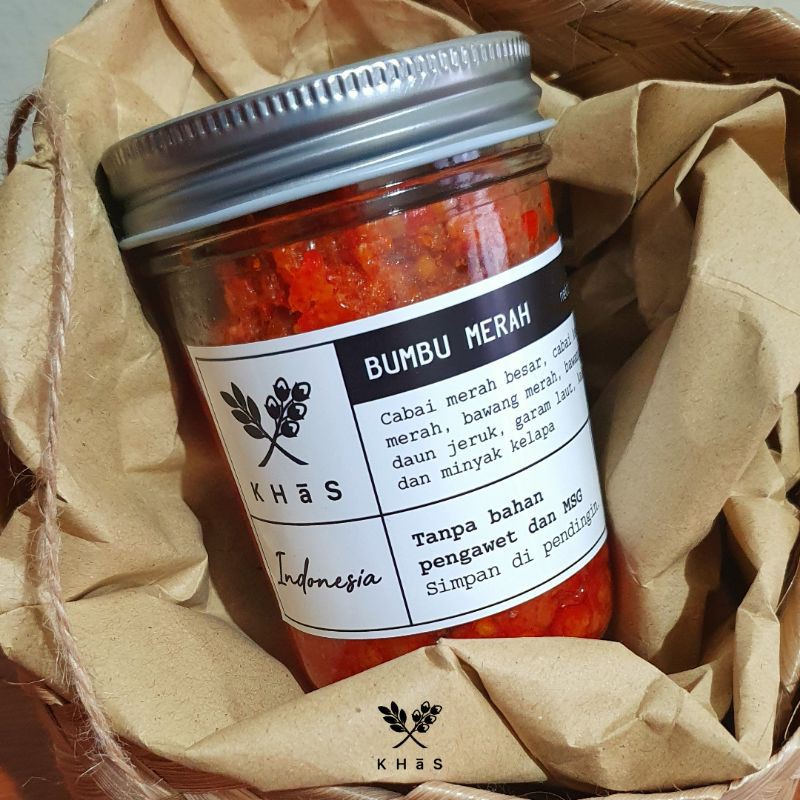 Khas Bumbu Merah yang terbuat dari cabai merah besar, cabai keriting merah, bawang merah, bawang putih, kemiri, daun jeruk, garam laut, kaldu jamur, dan minyak kelapa