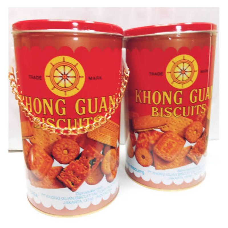 Biskuit Khong Guan kemasan Kaleng Bulat Rantai .