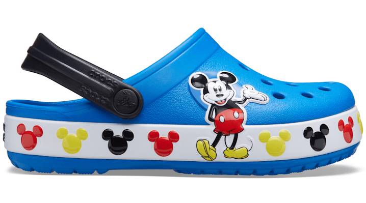 Real Fun Shoes For Real Fun Kids Disney’s Mickey Mouse has been charming fans of all ages for more than 90 years, and this new clog is the perfect day-to-day summer hit for the little Disney fan in your life. Crocs Fun Lab styles feature original character-rich graphics and other inspired designs to help kids express themselves and engage new friends, resulting in more fun for the little ones. Kids' Crocs Fun Lab Disney Mickey Mouse Band Clog Details: Bands and uppers featuring Mickey Mouse graphics where kids can interact with them Pivoting heel straps for a more secure fit Croslite™ foam outsoles for better traction, support and comfort Customizable with Jibbitz™ charms Iconic Crocs Comfort™: Lightweight. Flexible. 360-degree comfort. © Disney