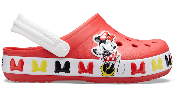 Real Fun Shoes For Real Fun Kids Disney’s Minnie Mouse has been charming fans of all ages for more than 90 years, and this new clog is the perfect day-to-day summer hit for the little Disney fan in your life. Crocs Fun Lab styles feature original character-rich graphics and other inspired designs to help kids express themselves and engage new friends, resulting in more fun for the little ones. Kids' Crocs Fun Lab Disney Minnie Mouse Band Clog Details: Bands and uppers featuring Minnie Mouse graphics where kids can interact with them Pivoting heel straps for a more secure fit Croslite™ foam outsoles for better traction, support and comfort Customizable with Jibbitz™ charms Iconic Crocs Comfort™: Lightweight. Flexible. 360-degree comfort. © Disney