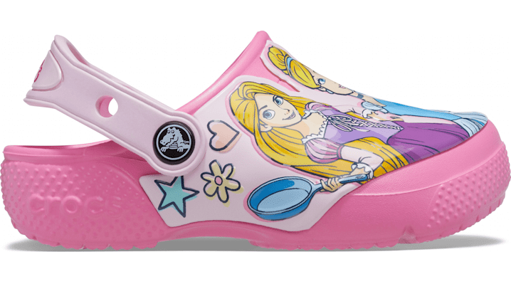 Real Fun Shoes For Real Fun KidsDisney’s Princesses have been inspiring kids and parents for generations. This new clog featuring a Princess graphic is sure to become your little princess’s new favorite go-to shoe for school, play days and adventures of all kinds. Crocs Fun Lab styles feature original character-rich graphics and other inspired designs to help kids express themselves and engage new friends, resulting in more fun for the little ones. Kids' Crocs Fun Lab Disney Princess Clog Details: -Uppers featuring Disney Princess graphics where kids can interact with them -Pivoting heel straps for a more secure fit -Croslite™ foam outsoles for better traction, support and comfort -Customizable with Jibbitz™ charms -Iconic Crocs Comfort™: Lightweight. -Flexible. 360-degree comfort. -© Disney/Pixar