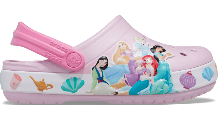 Real Fun Shoes For Real Fun Kids Have a budding princess on your hands? These Disney princesses will be perfect! It even features long-lasting LEDs that light up with every step. Crocs Fun Lab styles feature original character-rich graphics and other inspired designs to help kids express themselves and engage new friends, resulting in more fun for the little ones. Kids' Crocs Fun Lab Disney Princess Lights Clog Details: New Disney princess graphics on the bands Long-lasting LED lights; batteries are not replaceable Pivoting heel straps for a more secure fit Croslite™ foam for support and comfort Customizable with Jibbitz™ charms Iconic Crocs Comfort™: Lightweight. Flexible. 360-degree comfort. © Disney