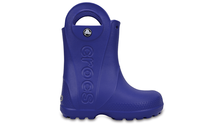 Now kids can enjoy classic Crocs comfort � even on the rainiest days. Our kids� rain boot is available in bright colors with a waterproof build that keeps puddle-jumping feet cozy and dry. Kids� Handle It Rain Boot Details: Waterproof rain boot. Fully molded Croslite trade material for lightweight cushioning and comfort. Reflective heel logo.