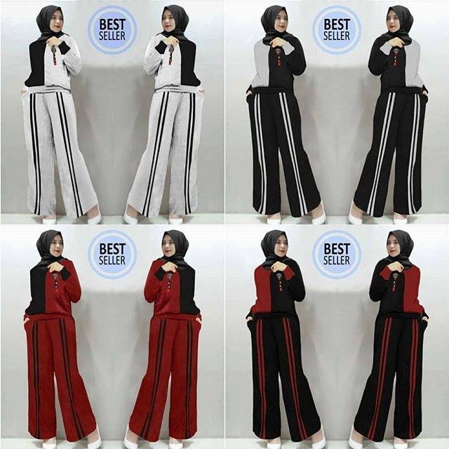 KIKI SET HDQK 108.000 blouse Ld106 Pjg 65cm + kulot Pjg 95cm kantong kanan kiri pinggang karet, FULL Bahan babyterry Good Qualit + PET INPORT, all size fit to XL