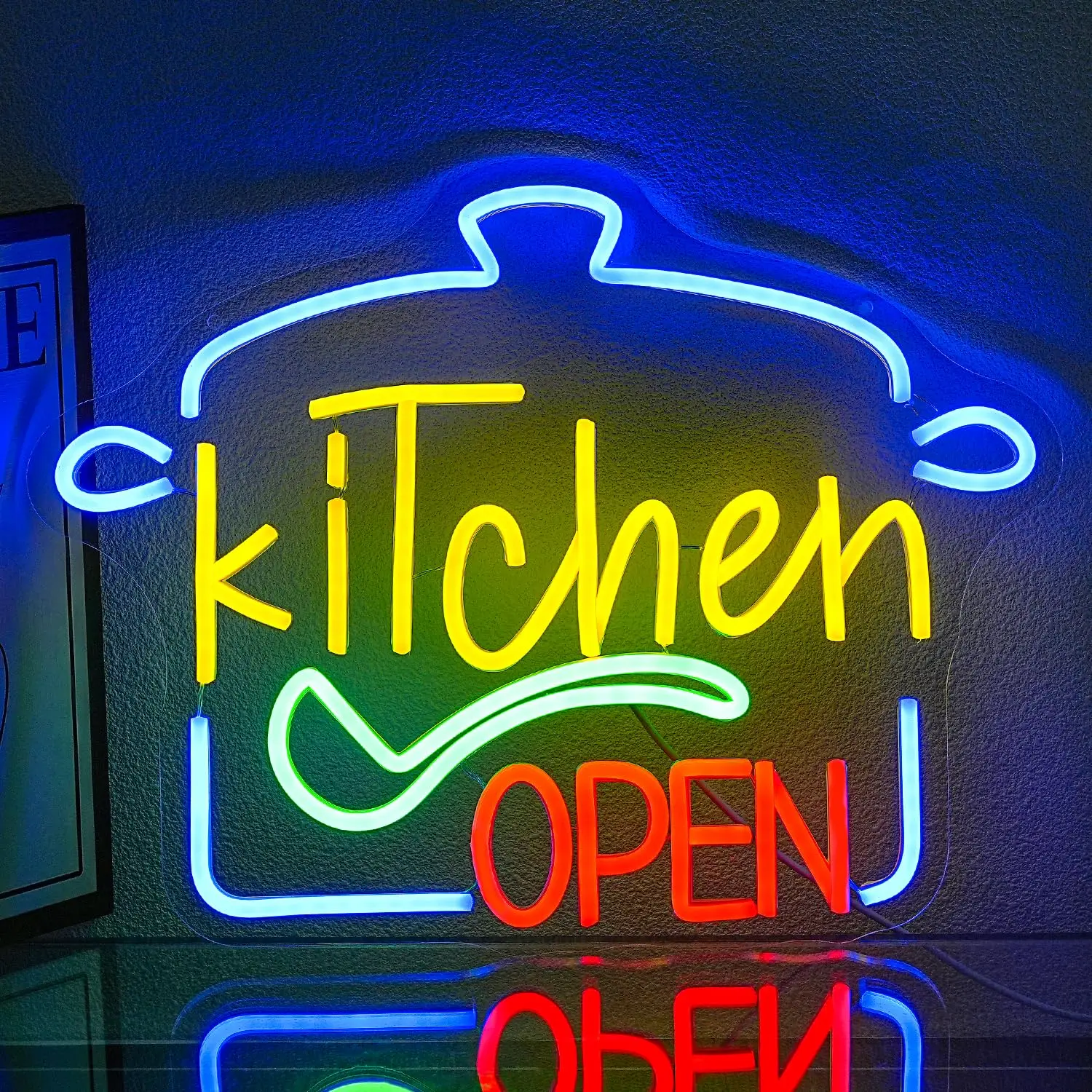 Kitchen Open Neon Sign USB Dimmable LED Neon Light for Wall Decor Business Store Home Kitchen Fast Food