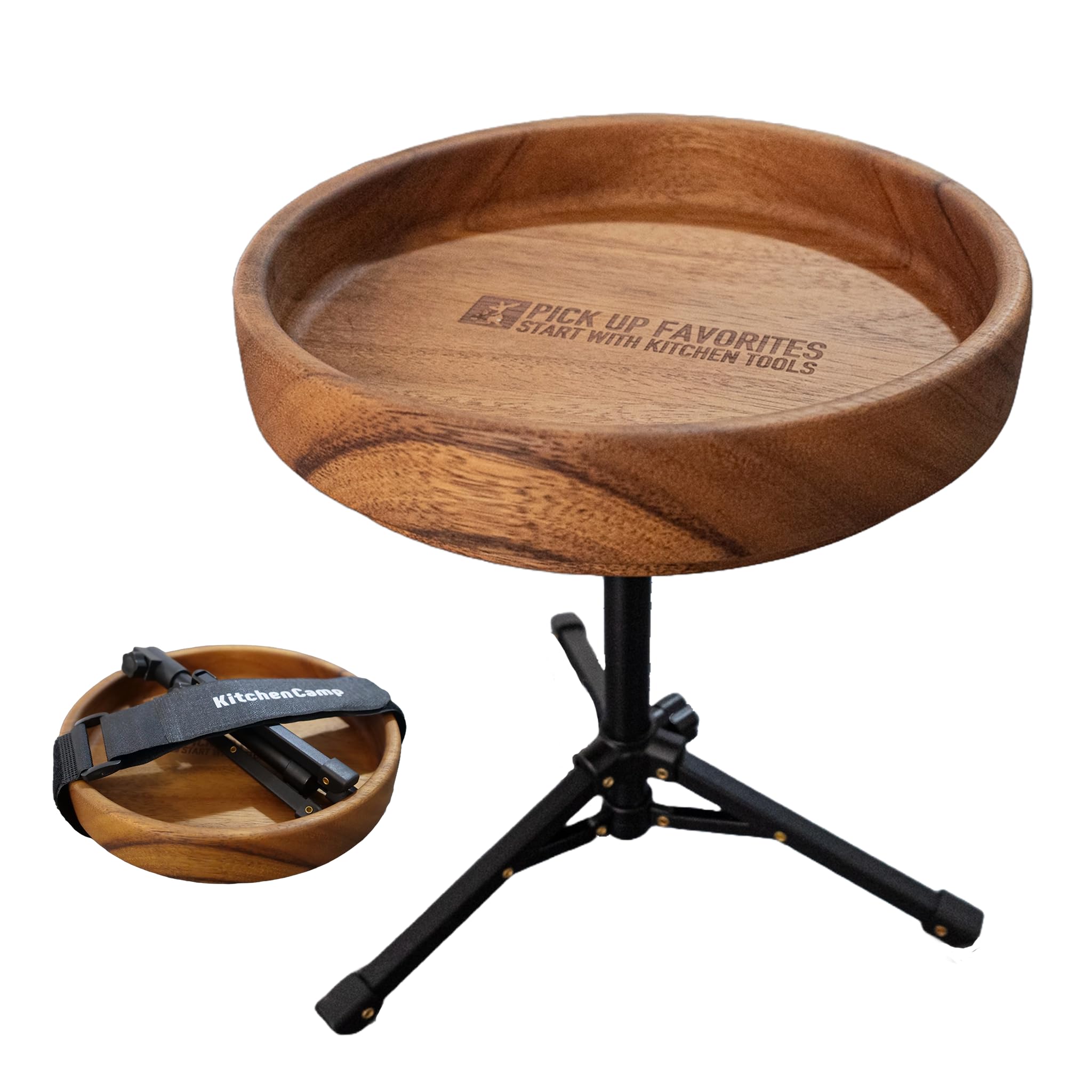 KitchenCamp Orte Side Table Mini Table Compact Lightweight Portable Folding Camping Outdoor Walnut (Round, 25cm)