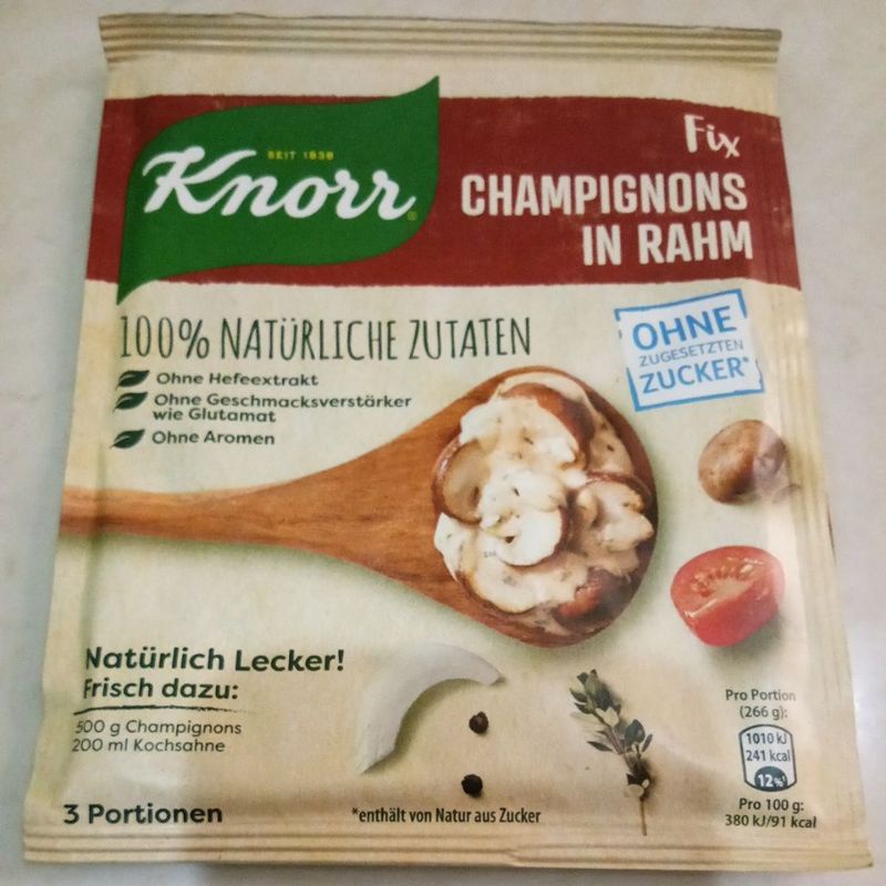 Saus krim, dibumbui dengan peterseli dan thyme, sangat selaras dengan aroma kacang jamur. Disajikan dengan spaetzle, krim jamur membuat penikmat segala usia senang, Knorr adalah bumbu dasar pertama yang terbuat dari 100% bahan alami dan tanpa tambahan gula. Juga cocok untuk hidangan vegetarian.