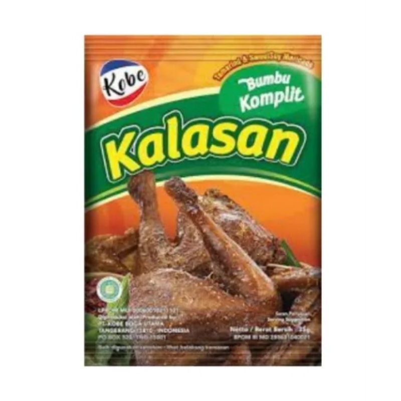 Kobe: Bumbu Komplit KALASAN, solusi bumbu masak praktis dan serbaguna untuk marinasi dan rendaman. Dgn bahan rempah asli indonesia, asem jawa dan ekstrak kecap, bumbu ini dibuat dalam bentuk serbuk untuk kepraktisan tanpa mengurangi hasil yg cukup memuaskan. Bumbu ini berguna untuk marinasi, terutama daging ayam, utk menciptakan rasa asem manis dgn warna cokelat yg menyelerakan. Bisa juga untuk tempe, telur, makanan2 bacem, hingga bumbu rendaman sate. Petunjuk penggunaan tertera di belakang kemasan.