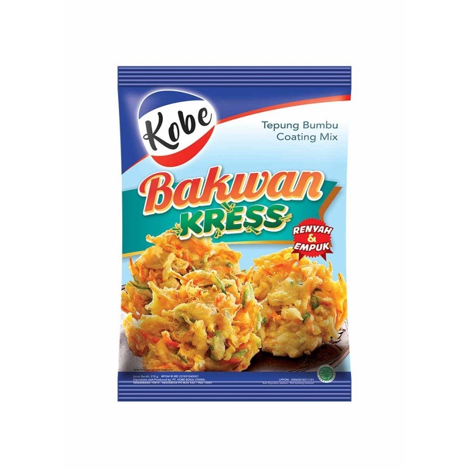 Kobe Bakwan Kress merupakan tepung bumbu instan yang dapat digunakan untuk menggoreng bakwan atau perkedel. Kobe Bakwan Kress dapat membuat bakwan dan perkedel menjadi lebih renyah, gurih dan empuk karena diproduksi menggunakan racikan bumbu alami dan tanpa bahan pengawet, serta aman digunakan karena telah bersertifikat halal dan sudah terdaftar resmi di BPOM.