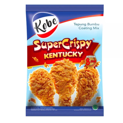 Mau tahu tepung ayam goreng mana yang terbukti paling crispy? Ini dia jawabannya: KOBE Super Crispy. Berdasarkan riset, 7 dari 10 ibu memilih KOBE Super Crispy dibandingkan tepung bumbu lainnya, karena hasil gorengannya yang lebih renyahan.* KOBE SuperCrispy memang diformulasikan khusus untuk menghasilkan ayam goreng yang paling renyah. Rasanya pun pasti lezat dan pas berbumbu.Tidak hanya itu kelebihan KOBE Tepung Super Crispy, hasil gorengan KOBE Tepung Super Crispy juga akan tahan kerenyahannya hingga 8 jam.Jadi, untuk membuat ayam goreng crispy yang renyah, pas berbumbu dan tahan renyahnya hingga 8 jam, pastikan untuk selalu menggunakan KOBE Tepung Super Crispy. Bagaimana caranya? Sangat mudah, pastikan untuk mengikuti petunjuk kemasan dalam pembuatannya. Celupkan ayam kedalam adonan basah kemudian gulingkan dalam tepung kering sambil dicubit ringan supaya tepung menempel maksimal. Buktikan sendiri kerenyahan dan kelezatan tepung ayam goreng pilihan ibu Indonesia