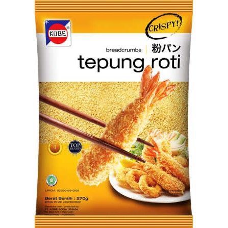 Kobe Tepung Roti. Tepung roti renyah, lezat, dan serbaguna. Dibuat dari roti tawar pilihan, menghasilkan balutan yang garing sempurna untuk berbagai hidangan gorengan, mulai dari tempura, katsu, hingga udang.