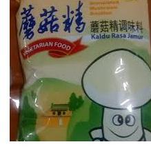 garam, jamur kering, beras, gula, hidrolisa protein sayur (mengandung kacang kedelai), tepung pemguat rasa (terbuat dari beras dan tepung jagung)
