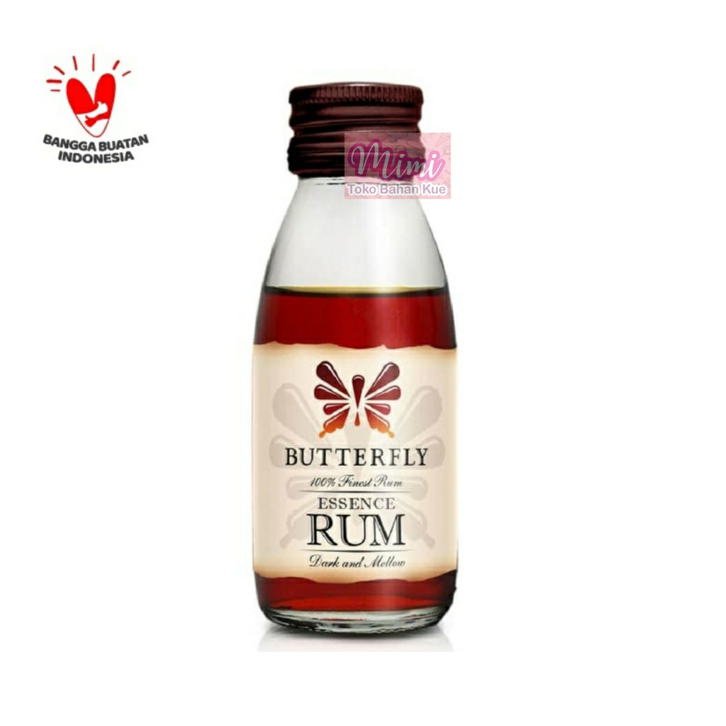 Butterfly rum essence adalah perisa rhum yang memiliki aroma yang sangat khas. Dapat digunakan untuk bergagam kebutuhan seperti membuat cake, pudding, kue dll. Cukup dengan penggunaan 1sdt untuk 1kg adonan. ... Fungsi Rum pada pembuatan kue adalah sebagai penguat rasa dan aroma, juga bisa membuat kue bertahan lebih lama.