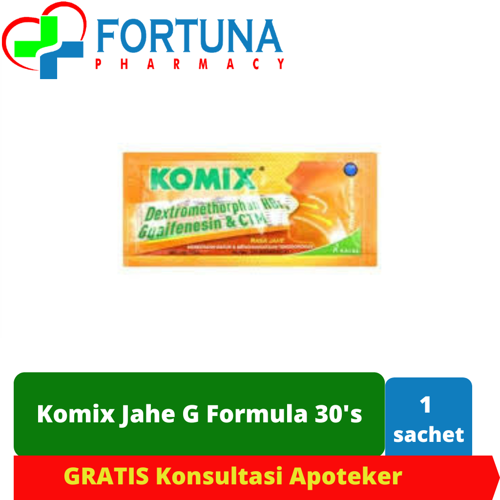 KOMIX RASA JAHE merupakan sirup batuk yang dikemas dalam sachet berukuran 7 ml dengan rasa Jahe. Obat ini mengandung Guaifenesin, Dextromethorphan HBr, dan Chlorpheniramin Maleate yang berkhasiat membantu meredakan batuk dan menghangatkan tenggorokan. KOMIX bekerja sebagai antitusif untuk mengurangi gejala batuk, antihistamin untuk meredakan batuk, dan ekspektoran untuk mengeluarkan dahak.