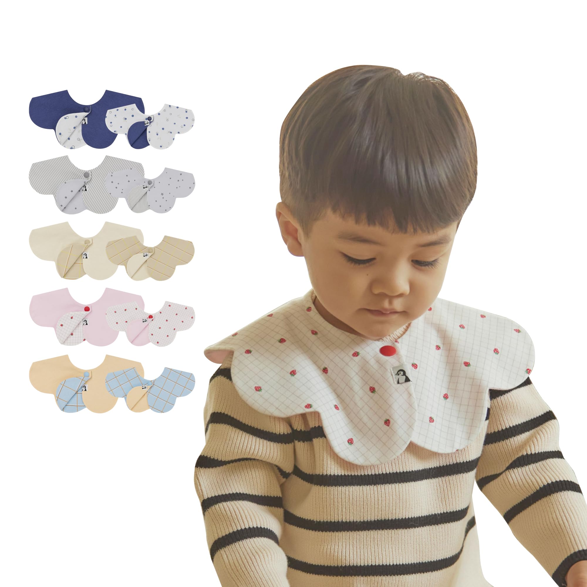 Konny Двусторонний Набор Слюнявчиков из 5 штук Новые Цвета 2025 Детский Слюнявчик Скручивающийся Впитывающий и Простой Для Девочки Мальчика Координация Малыша Подарок на Детский Праздник Стильный Подарок 5