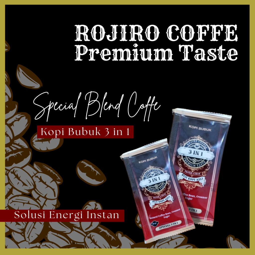 Kopi 3in1 Rojiro Coffee merupakan kopi instan unggulan dari Rojiro Coffee.